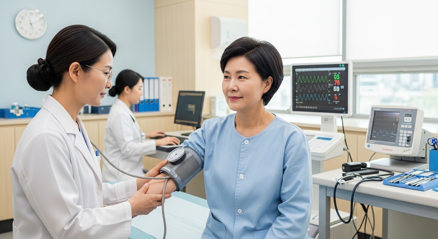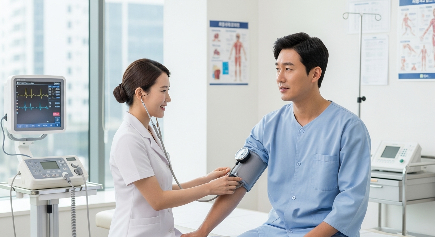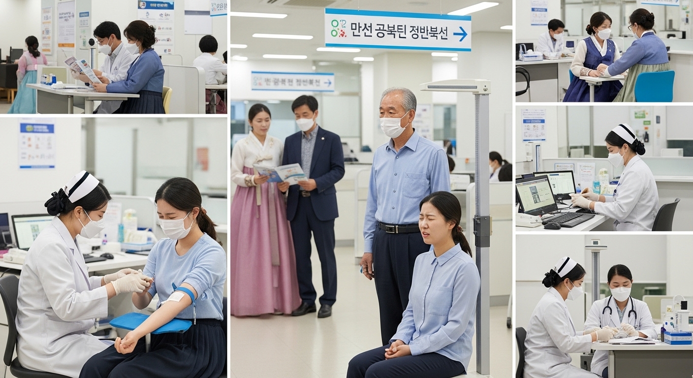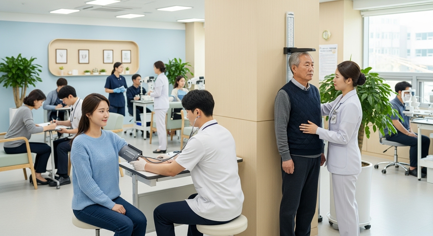 - 기본 검진: 혈압, 혈당, 시력, 청력, 체질량지수, 요단백 검사 등