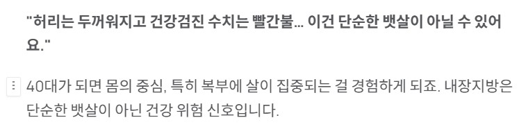 “허리는 두꺼워지고 건강검진 수치는 빨간불… 이건 단순한 뱃살이 아닐 수 있어요.”