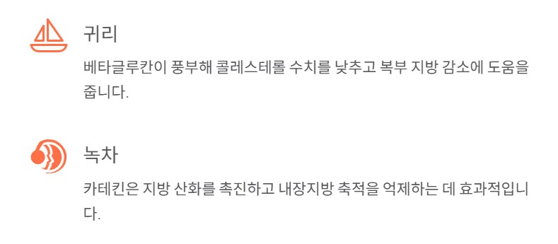 귀리는 베타글루칸이라는 수용성 식이섬유가 풍부해 콜레스테롤 수치를 낮추고 복부 지방 감소에 도움을 줍니다. 혈당을 천천히 올려 인슐린 과다 분비를 막고, 내장지방 형성도 예방하죠. 아침식사로 귀리죽이나 오트밀 형태로 섭취하면 포만감도 오래 유지됩니다.